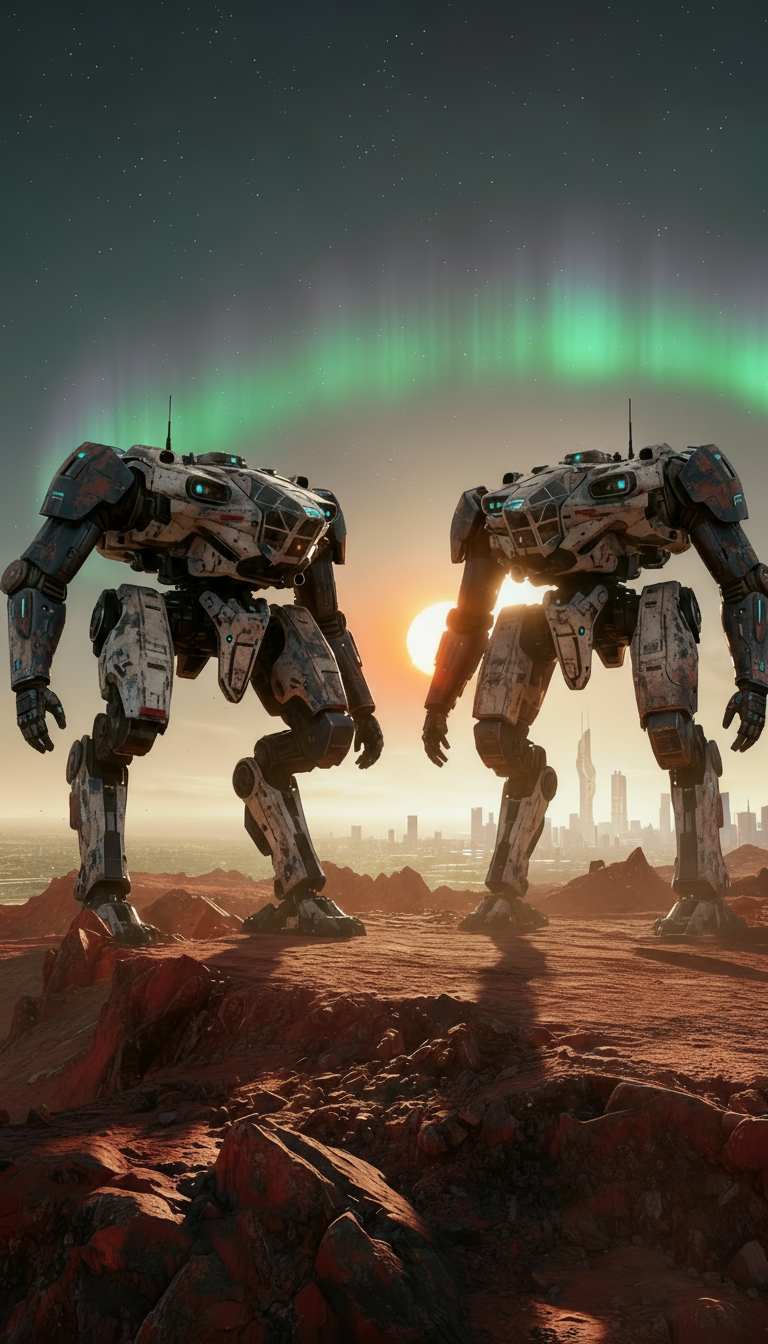 The air was sharp and metallic, daring us to breathe it. Even through my suit’s filtration, I could taste minerals and ozone. As we disembarked from the transport ship, our combat walkers stood lined along the ridge like mechanical sentinels. My Baihu, with its sleek profile and scarred armor, seemed almost eager. My pulse thrummed with the electric mix of nerves and excitement that every pilot feels before the first test.
