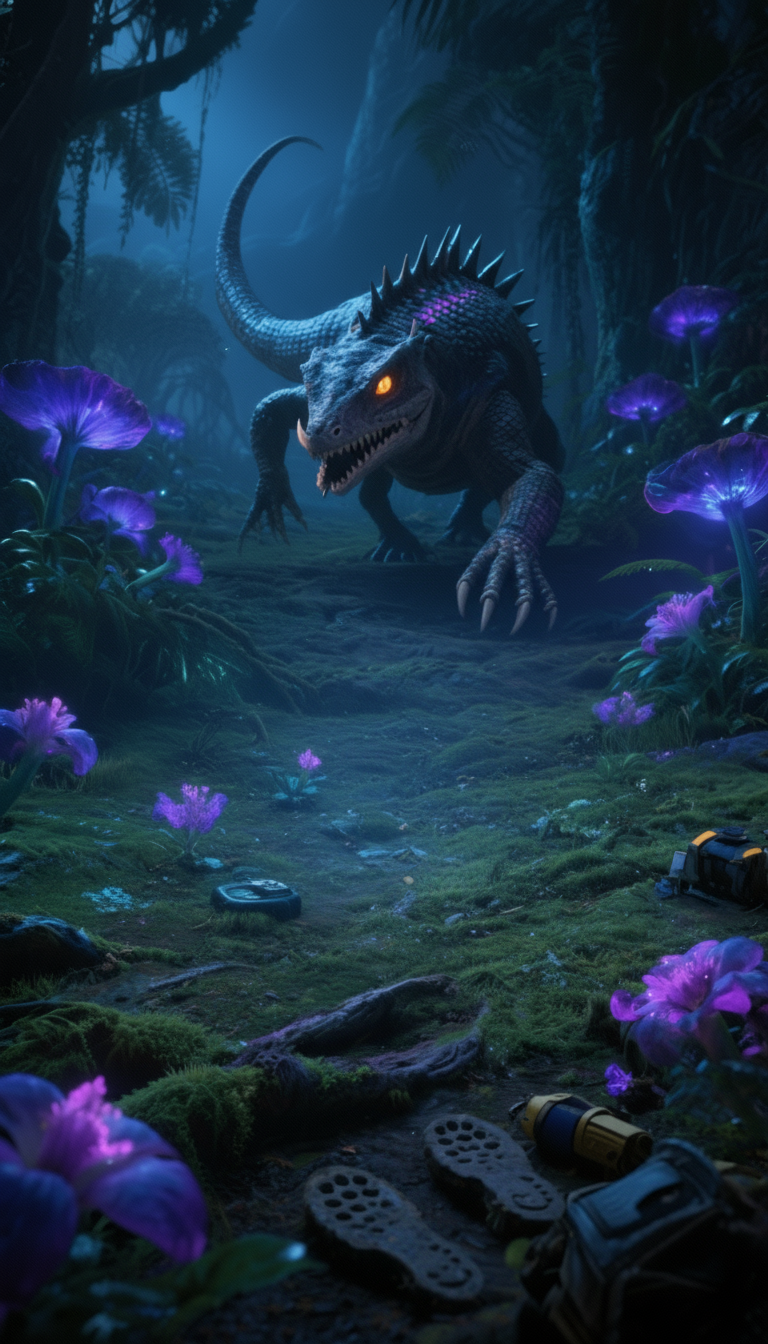 The Aurion Bloom changes color from violet to amber as day fades. Its nectar is a complex sugar analog with biofuel potential—but it oxidizes quickly, releasing a sweet gas that attracts predatory insectoids. Dr. Reyes was stung; he’s recovering. Lesson learned: nothing here is harmless.