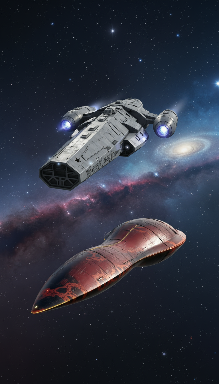Approaching the coordinates of the signal in what would later be designated GL 54, the Qingdao encountered a formation of unknown vessels. Their surfaces glistened like black glass, moving in silent formation near an asteroid cluster. They bore no resemblance to any Terran ship. Zhou ordered a full sensor sweep, but the instruments failed as one of the vessels emitted a pulse that disrupted every system on board.