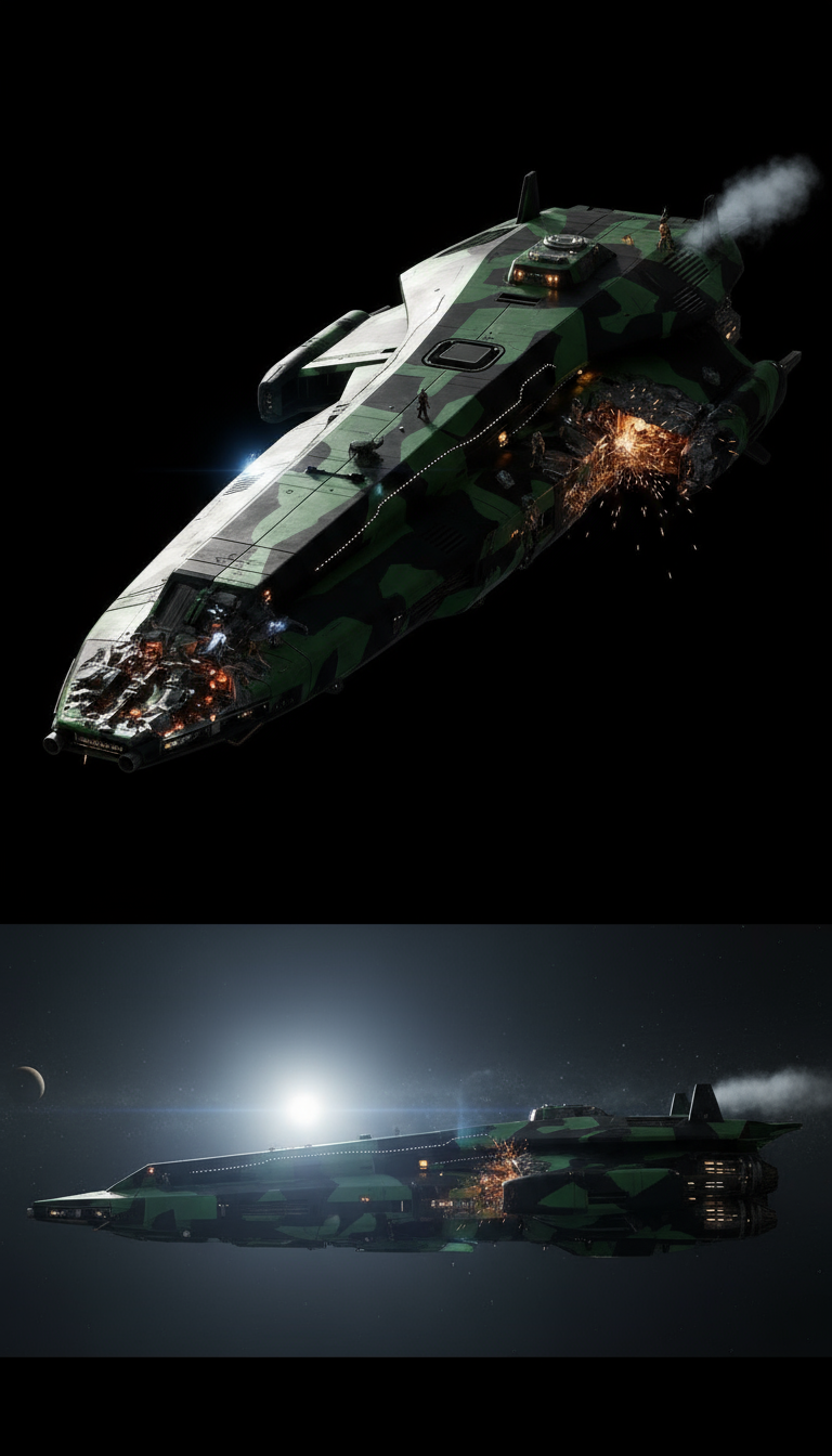 I’ve got a team scavenging parts from wrecks we hauled in during the retreat. Two support craft were gutted for components. It’s crude, improvised work, but patchwork engineering is our new normal aboard a combat ship held together by luck and determination.